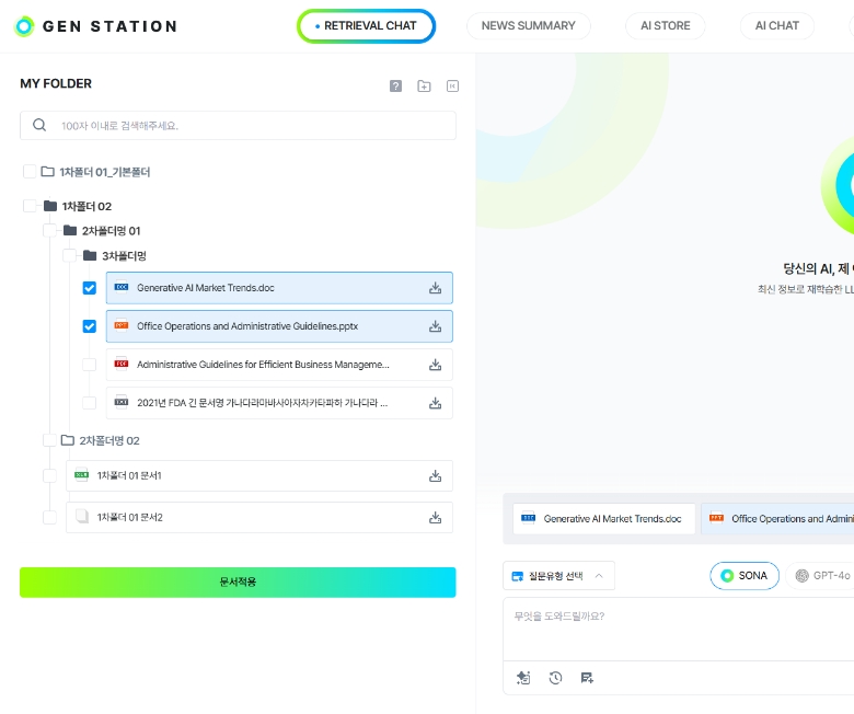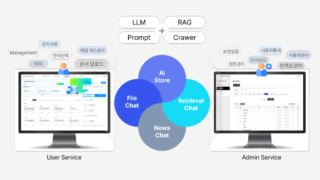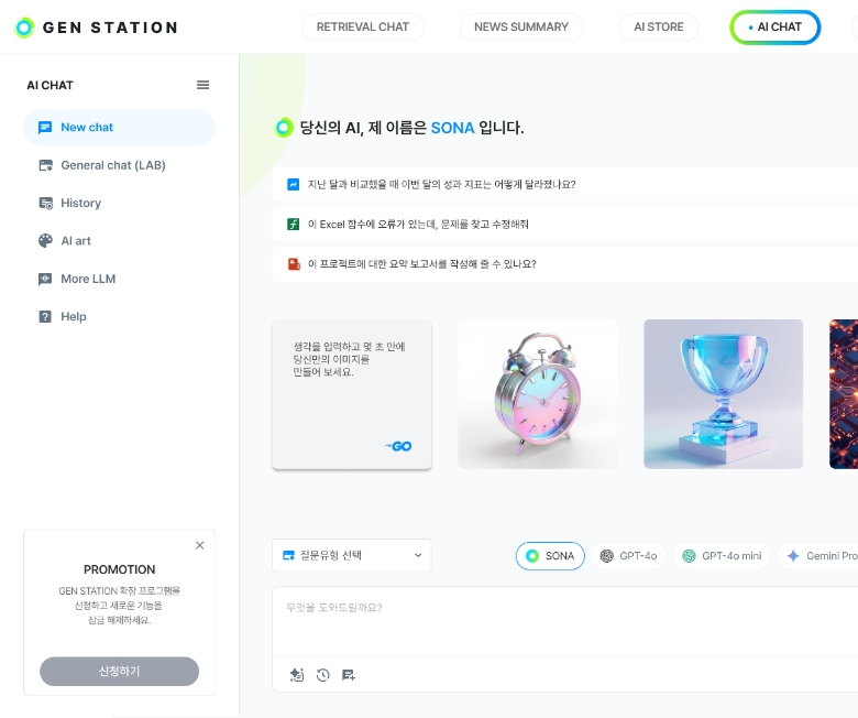 GEN AI를 적용하여 편리한 시장조사와 다양한 산업의 업무 자동화를 지원하여 기존의 업무방식을 탈피한 새로운 업무방식으로